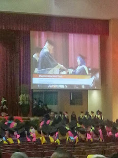 Sementara nak tunggu ambil skrol tu, rasa bosan mulalah datang menjelma dan sangat rimas sebab jubah konvo ni sangat berat okeyh terasa macam pikul beras 10kg atas bahu. Huhuhu... Tapi bila giliran dah tiba dan bajet semua mata akan memandang ke arah kita mulalah jantung ni nak berdegup kencang dan macam-macam benda lucu dan malu yang difikirkan. Huhuhu... Bukan apa sebab dah ada kejadian mortarboard jatuh la...tersadung kaki la...dan macam-macam lagi perkara yang memalukan. Huhuhu... Dan yang paling menakutkan kami semua ialah bimbang kalau-kalau gambar pentas tu tak jadi. Boleh mimpi ngeri taw!!! Kalau gambar tak jadi jawabnya kena tunggu konvo master pulak lah. Hahaha!!! Lainlah kalau pro-canselor tu sanggup nak bergambar lagi sekali ngan kita ni. Hahaha!!! Memang tak lah kan (ini sangat mengarut!!!).